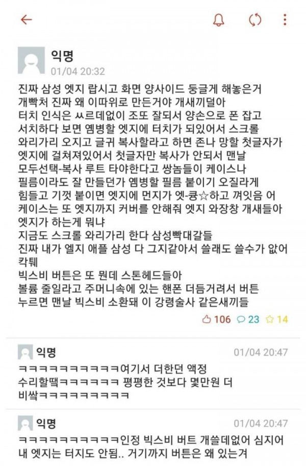 삼성 엣지폰 쓰다 빡친 대학생