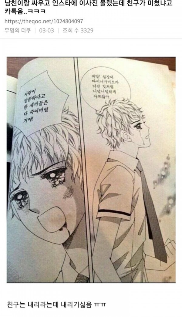 남친과 싸우고 인스타에 올린 사진